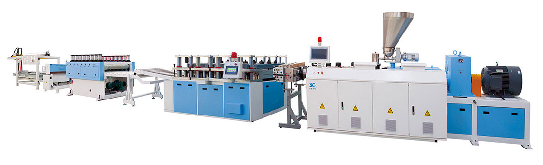 PVC结皮发泡板生产线是我司经多年自主研发的一种新型发泡板生产线。本生产线为西门子全电脑屏控制,是本公司历经八年所得。可生产PVC结皮发泡板,建筑模板,WPC地板,门板。